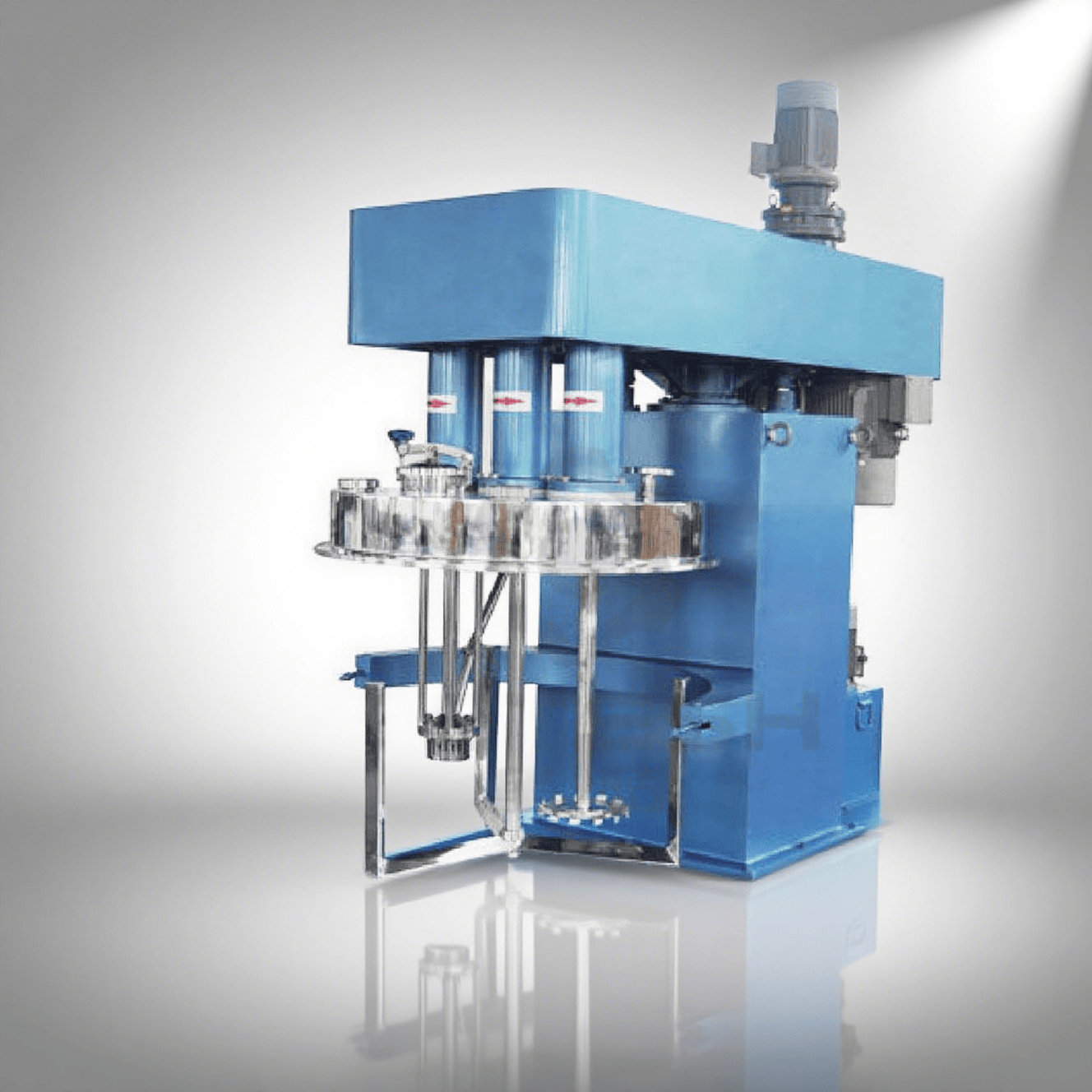 三軸多功能攪拌機多功能攪拌機集低速強力攪拌和高速分散/乳化多功能于一體,對中高粘度及觸變性物料具有很好的適用性,對于攪拌、分散/乳化可同時進行,能獲得理想效果。該機適用于各種物 -
