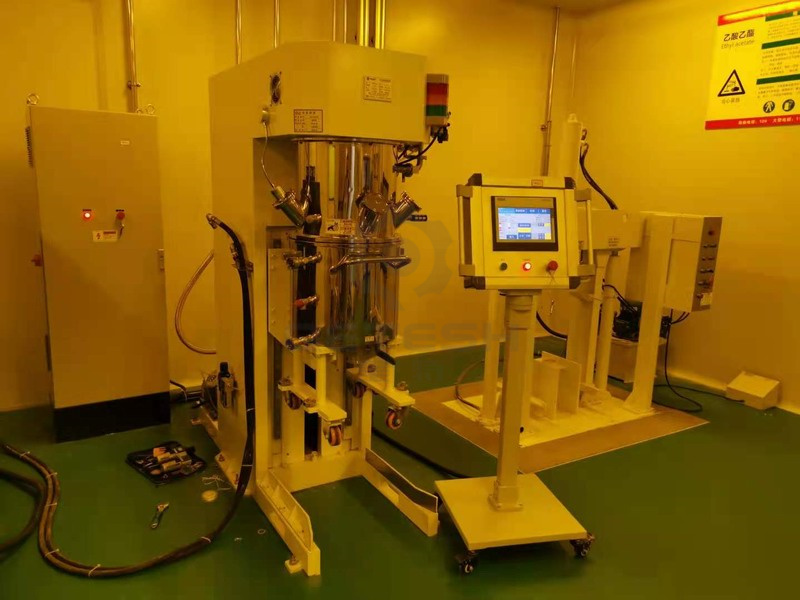 雙行星攪拌機雙行星混合機的攪拌槳葉,在公轉的同時也自轉,使罐體內物料上下及四周循環運動,從而可在很短時間內達到混合(混煉)效果。罐體內壁為大型立車精加工,再經大型拋光機自動 -